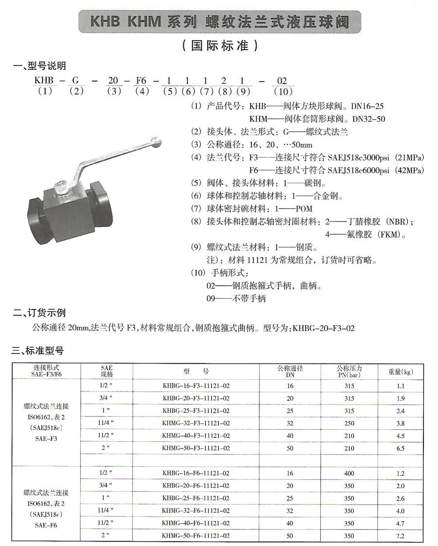 KHB KHM系列 螺紋法蘭式液壓球閥