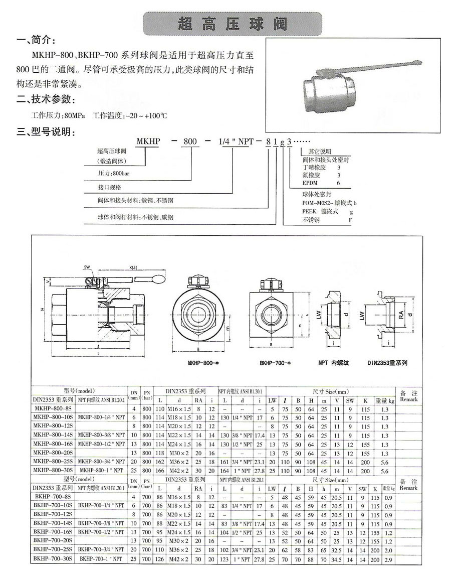 KHB(或BKH)KHM 系列高壓球閥